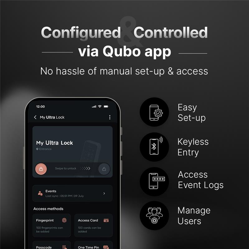 Smart Door Lock Ultra (Front) 1N, Smart Door Lock Ultra (Back) 1N,Mortise 1N, Screw Kit 1N, Access Card 3N, Mechanical Key 2N, Key Cylinder 1N, Scouring Pad 1N, Mounting Plate 1N, Strike Plate 1N, Drilling Template 1N, Quick Startup Guide 1N, Warranty Card 1N
